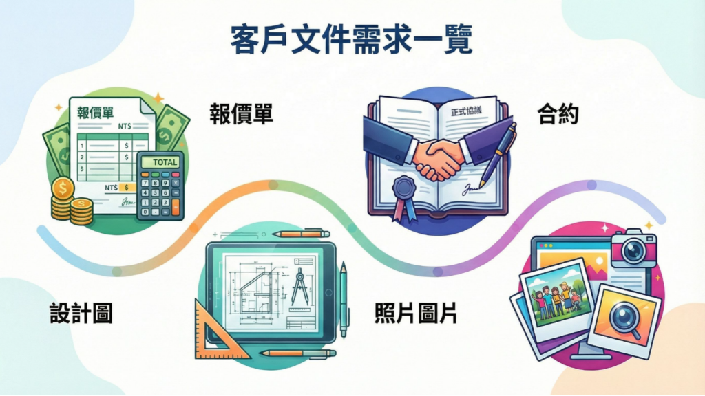 可直接上傳檔案或資料夾,系統支援 PDF、Word、Excel、圖片、影片、音檔、CAD 檔案等多種格式。