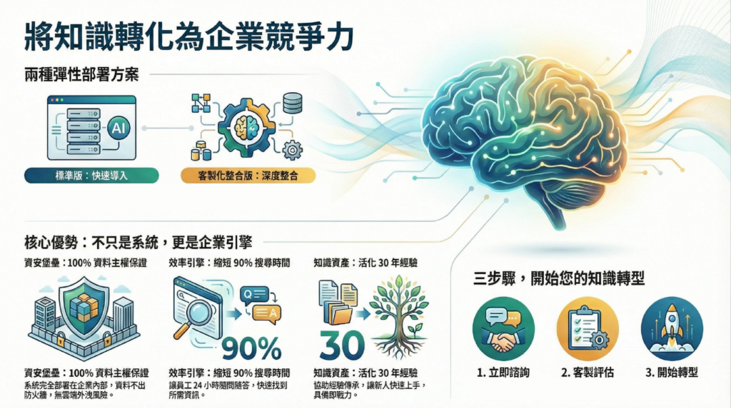介面操作展示-智能助手,輸入自然語言進行互動,智能助理可協助:搜尋檔案、回答問題、整理資料;智能助理回覆會提供參考檔案連結,點擊即開啟該檔案檢視畫面。